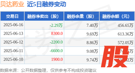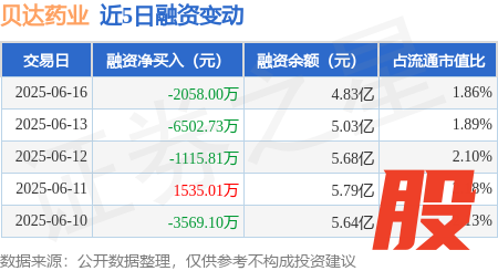 本站消息摩根证券,6月16日,贝达药业(300558)融资买入7781.11万元,融资偿还9839.11万元,融资净卖出2058.0万元,融资余额4.83亿元,近20个交易日中有11个交易日出现融资净买入。